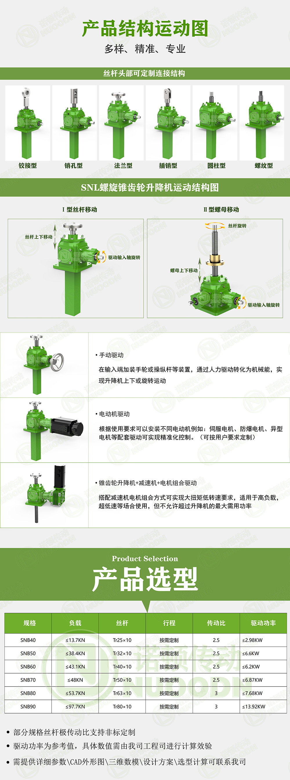 公司是华东地区较具有规模的升降机厂家,致力于丝杆升降机、齿轮齿条升降器和锥齿轮升降机等线性与传动设备的专业制造公司,主要生产经营:丝杆升降机、齿轮齿条升降器、锥齿轮升降机、蜗轮丝杆升降机、螺旋丝杆升降机、滚珠升降机等产品广泛应用于汽车装备,自动化装备,冶金行业,航天航空军工,港口机械等各行各业。